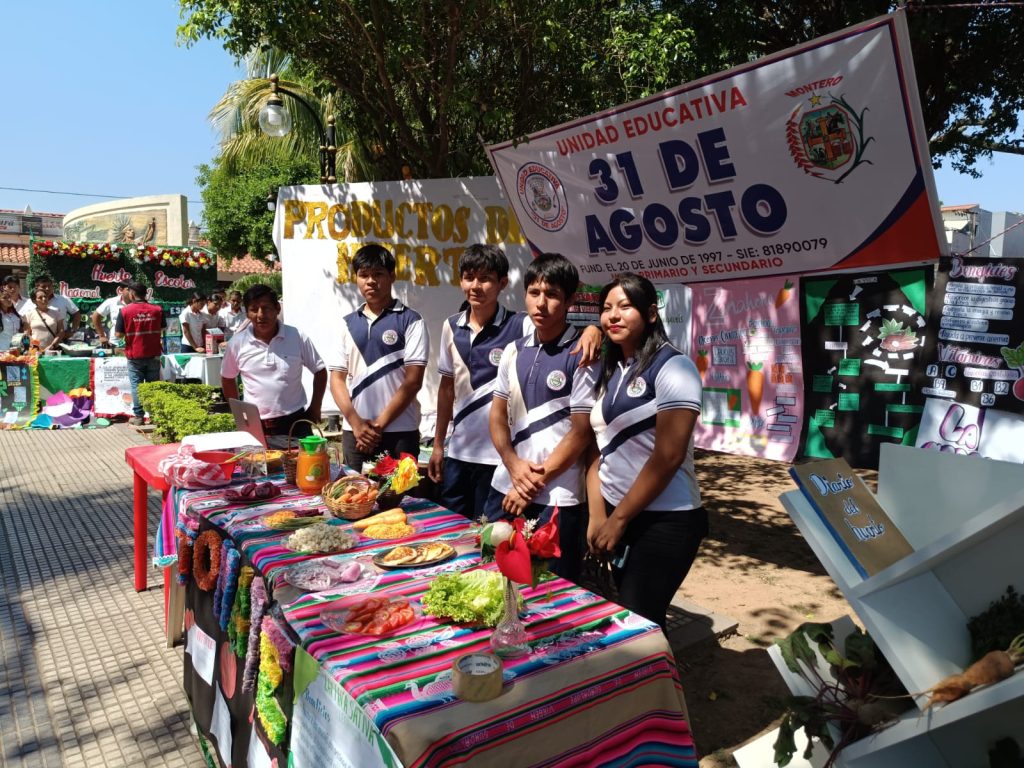 Los colegios participantes fueron: Santa Ana, Nuevo Milenio, María Auxiliadora, Nueva Esperanza, Nal. Guabirá II, 31 de Agosto, Germán Busch, Elvira Frías y la Fundación FUSDONI, quienes presentaron con creatividad y compromiso la implementación de sus huertos escolares integrales y agroecológicos, compartiendo con el público y el jurado el esfuerzo de meses de trabajo.