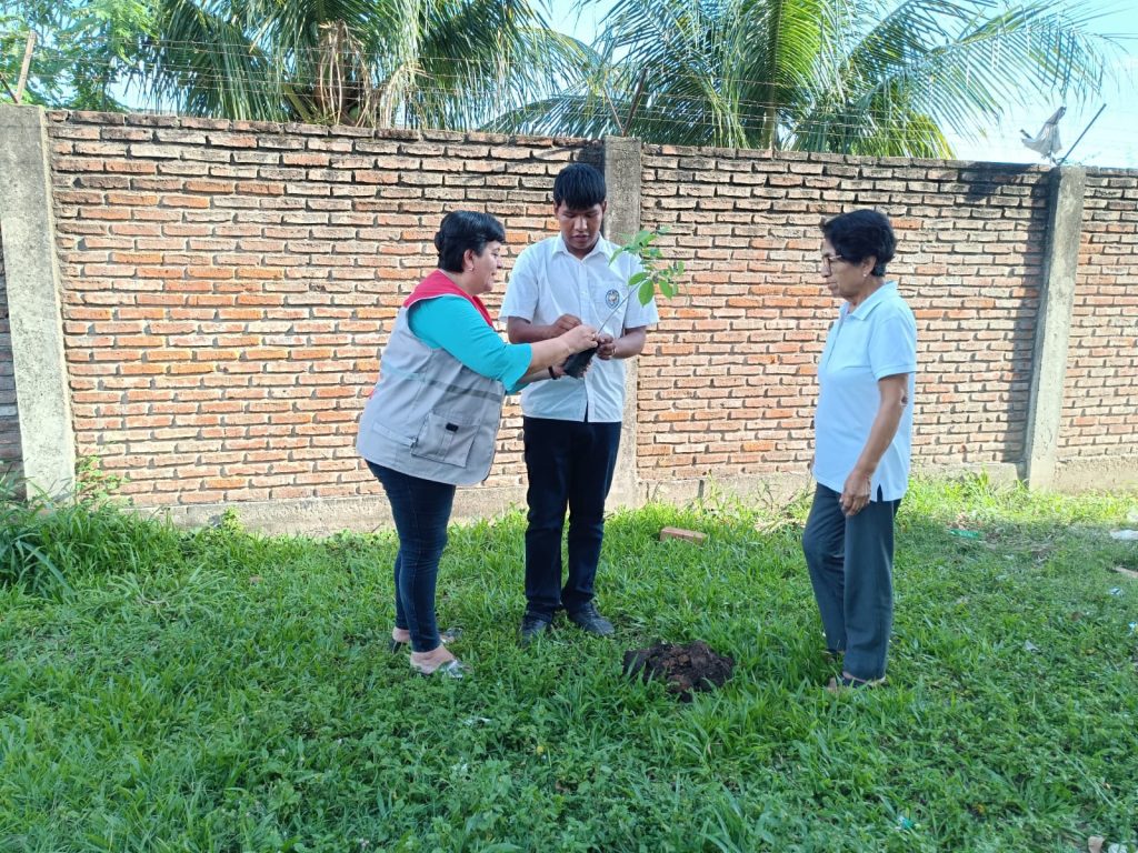 El Comité de Arborización y Reforestación que impulsa la campaña “Montero Crece Verde” realizó la entrega de 18 plantines para la arborización del patio de la Unidad Educativa José Cronenbold, ubicada en el Distrito 4 de la ciudad de Montero.